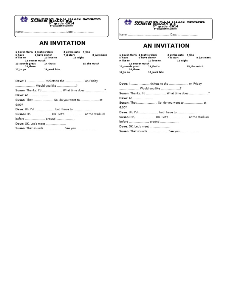 Invitation Dialogue Comprehension | PDF