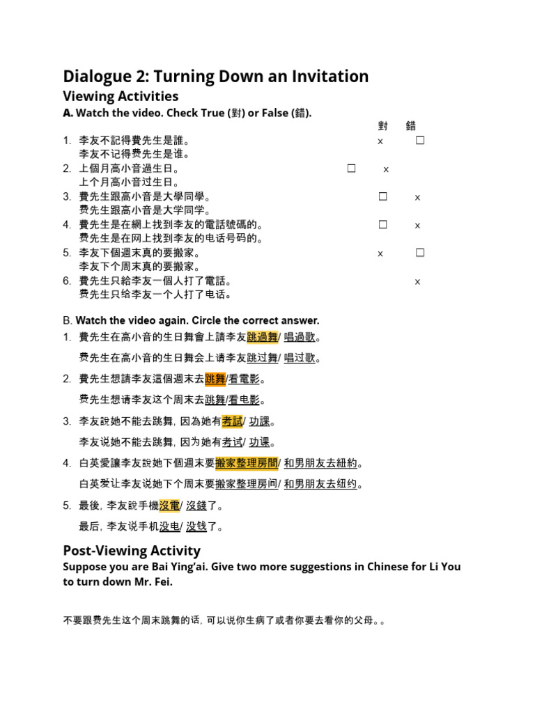 Dialogue 2 - Turning Down An Invitation | PDF
