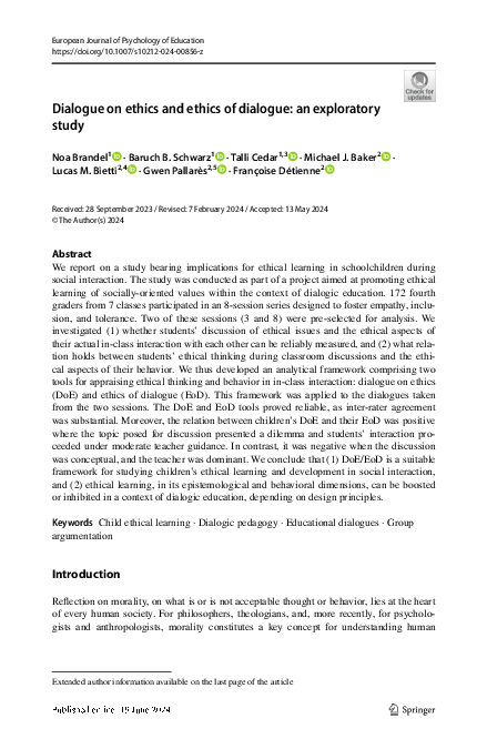 (PDF) Dialogue on ethics and ethics of dialogue: an exploratory study