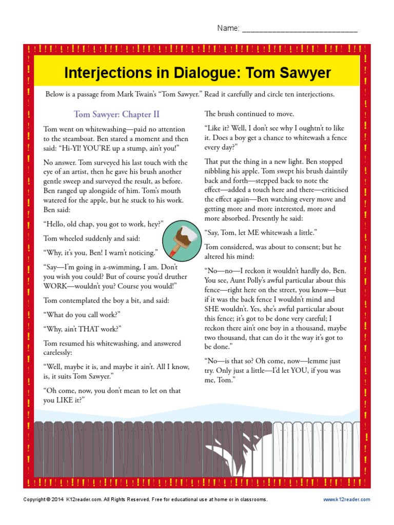 Interjections in Dialogue Tom Sawyer PDF | PDF