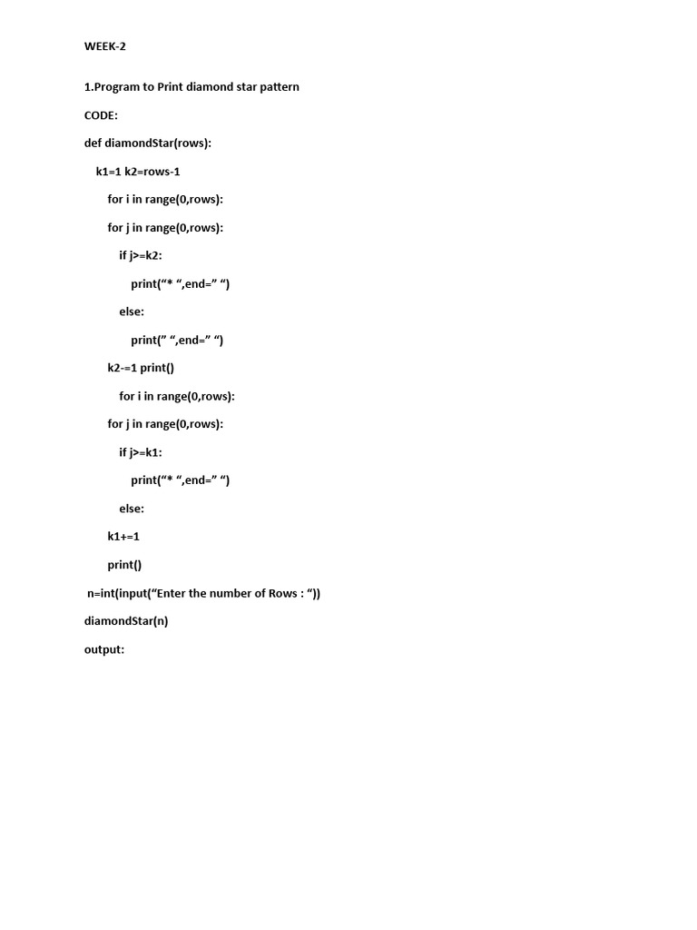 Diamond Pattern Printing Program -Stars in Diamond Shape | Python ...