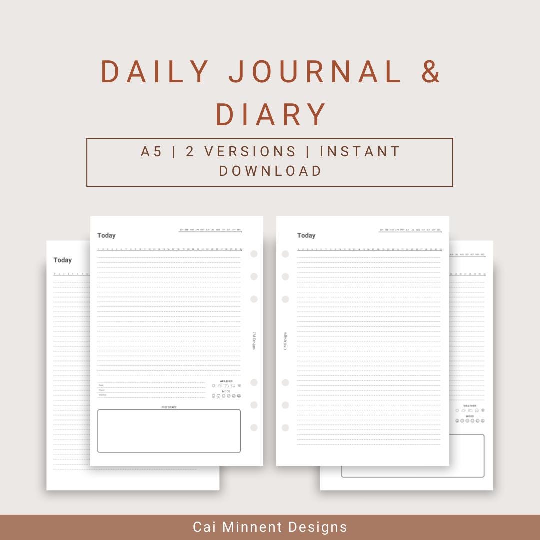 A5 Two-page Printable Daily Journal & Diary Set | 2 Versions ...