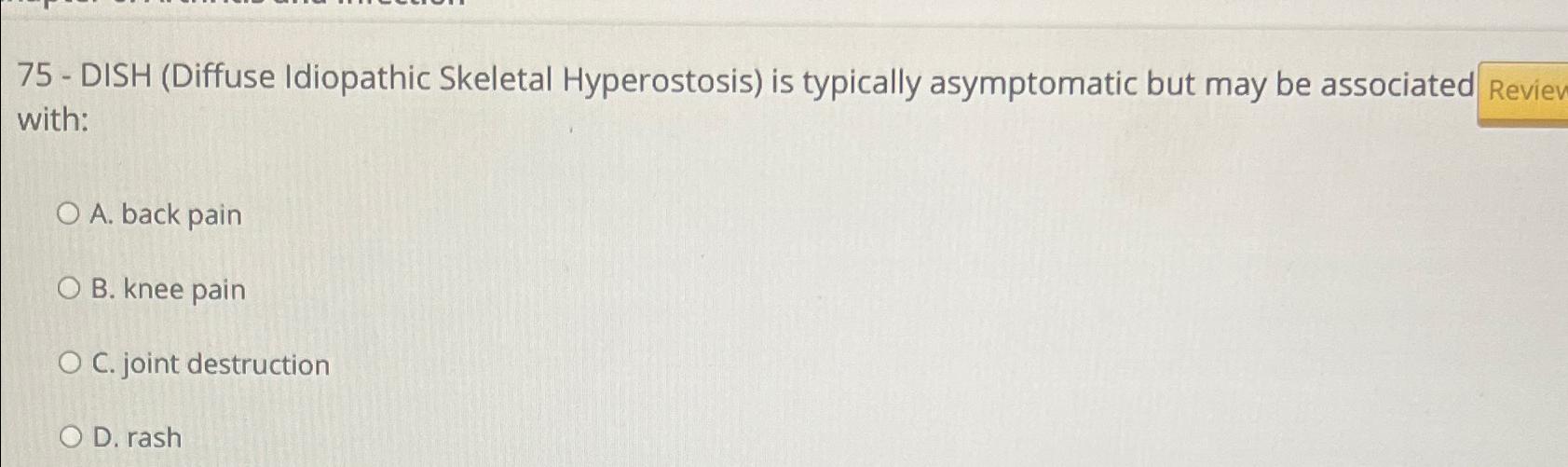 Solved 75 - DISH (Diffuse Idiopathic Skeletal Hyperostosis) | Chegg.com