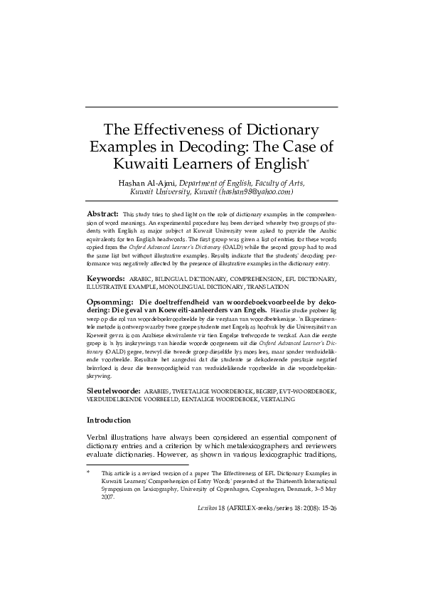 (PDF) The Effectiveness of Dictionary Examples in Decoding: The Case of ...
