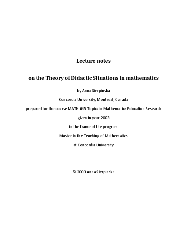 (PDF) Lecture notes on the Theory of Didactic Situations in mathematics