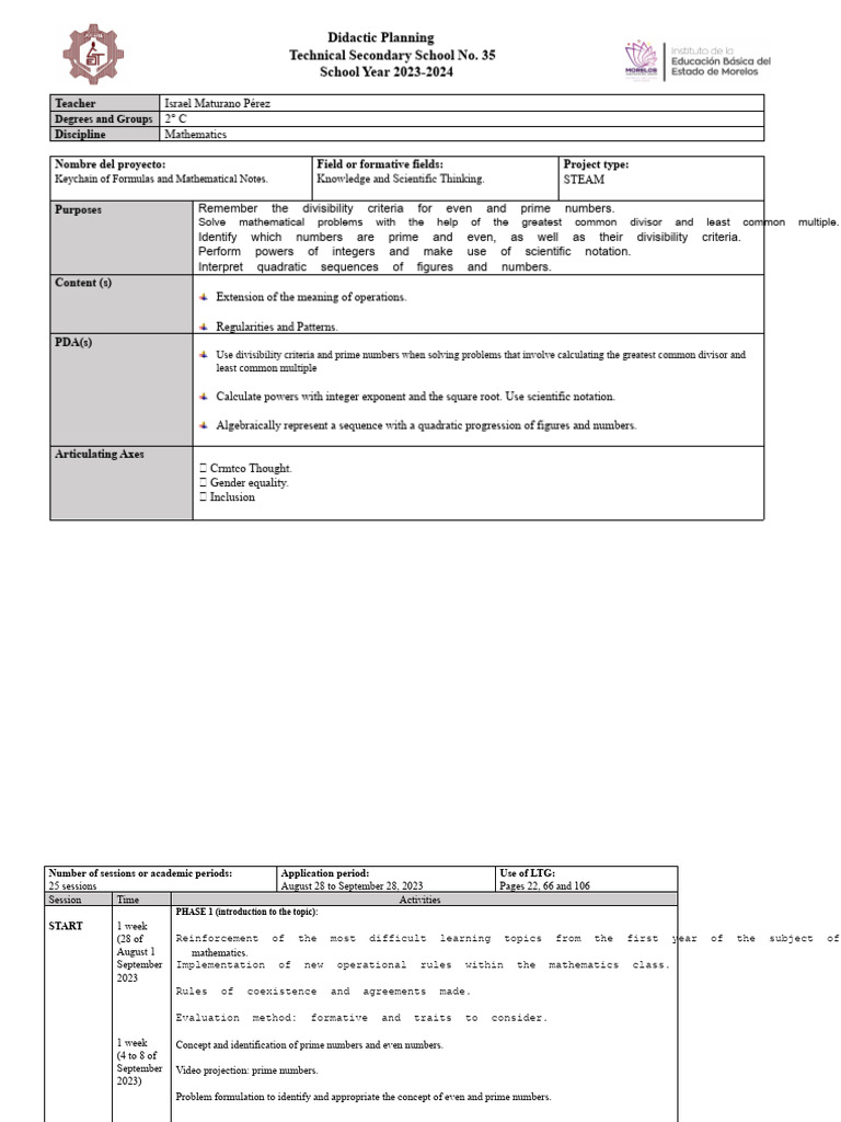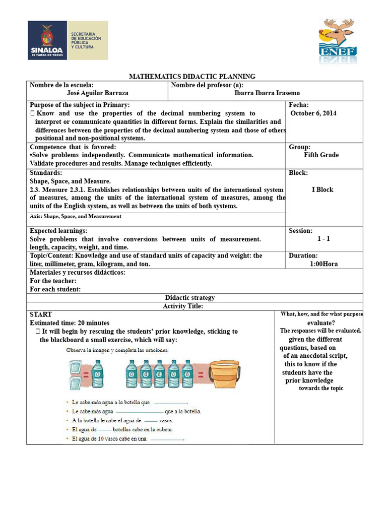 Didactic Planning Mathematics 2 IBARRA | PDF | Physical Quantities ...