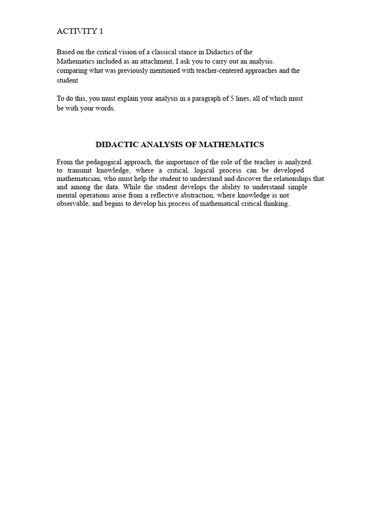 Activity 1 Didactic Analysis of Mathematics | PDF