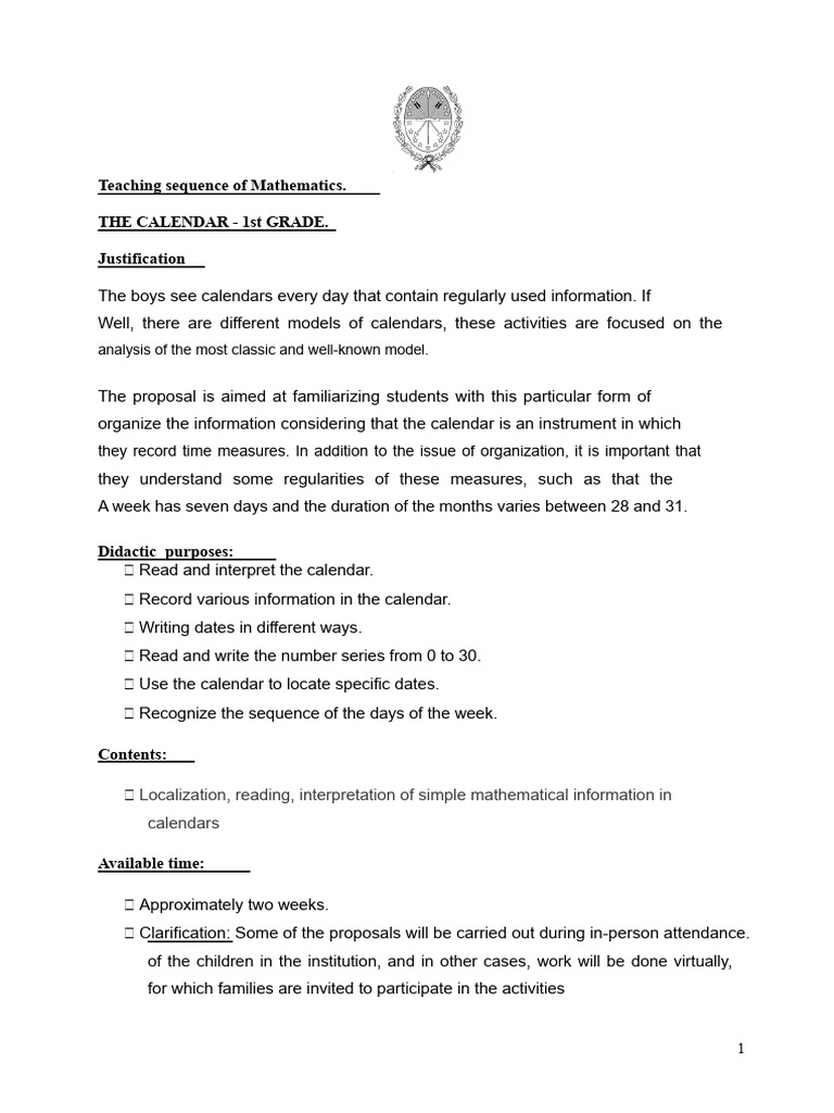DIDACTIC SEQUENCE Mathematics 1st Grade (Latest Version) | PDF ...