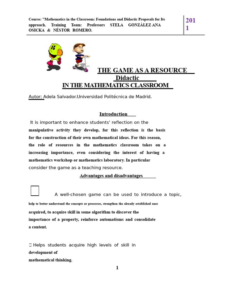 The Game as a Didactic Resource for Mathematics | PDF | Creativity ...