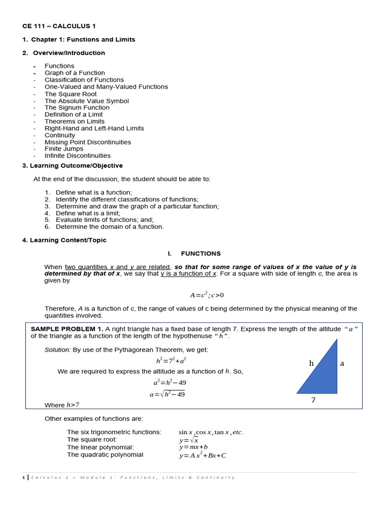 Diff - Calc - Module-1-Functions Limits Continuity | PDF | Function ...