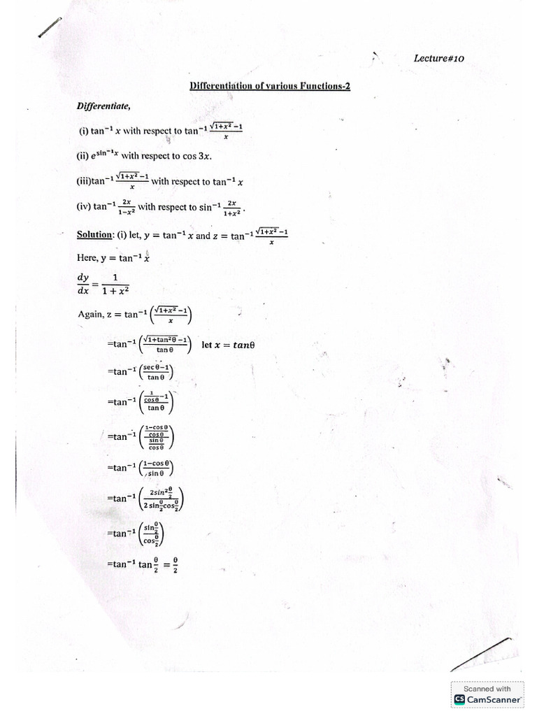 Differential and Integral Calculus - Differentiate with Respect to ...