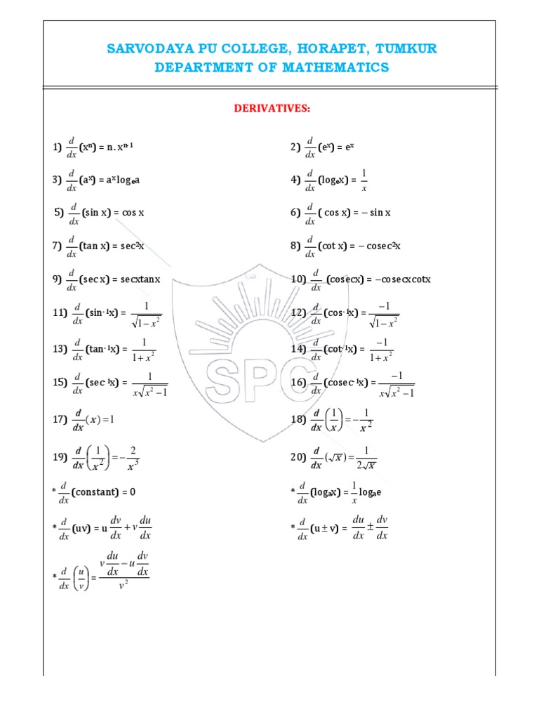 Complete guide for differentiation and integration formulas – Artofit
