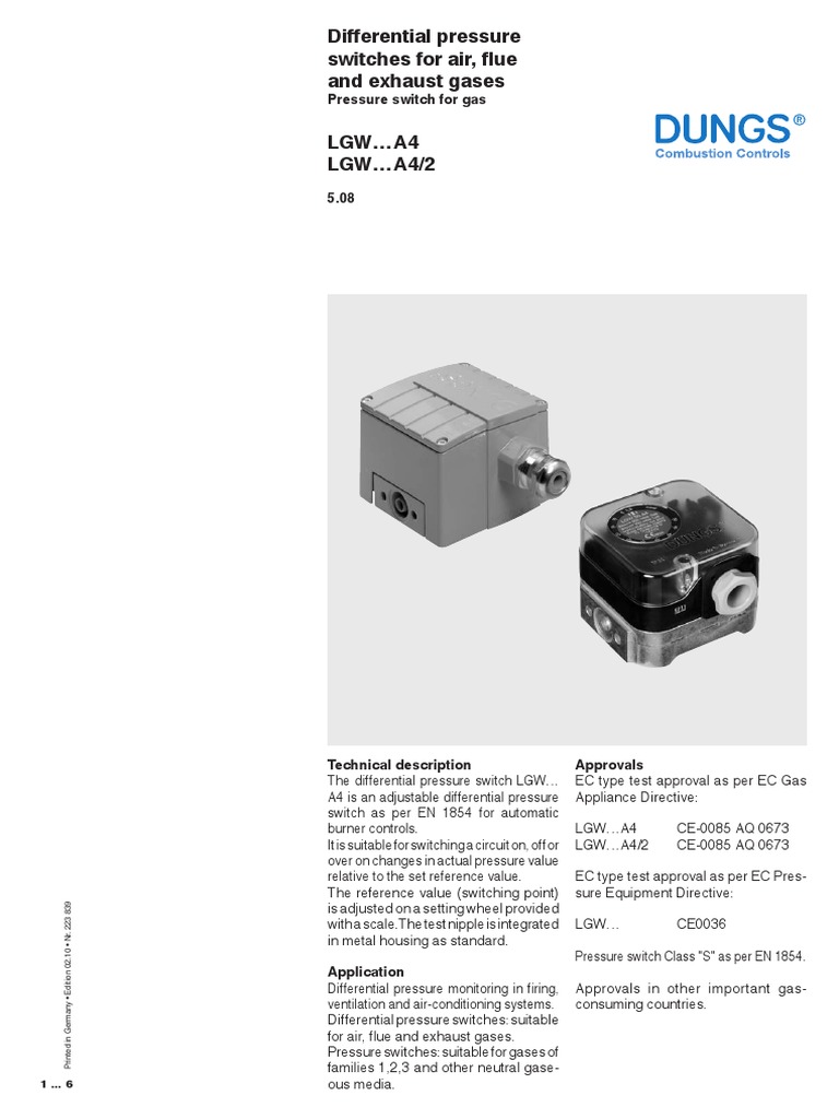 Datasheet Differential Pressure Switch LGW A4 | PDF | Ac Power Plugs ...