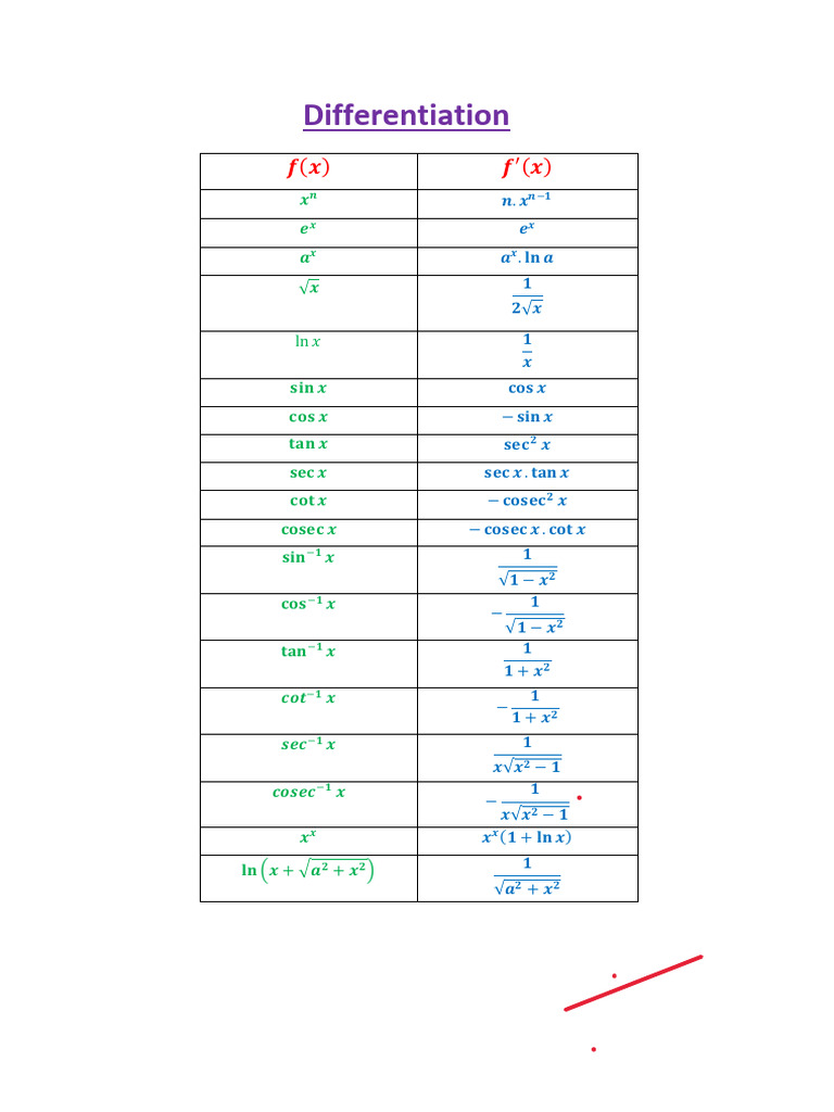 Differentiation all formula – Artofit