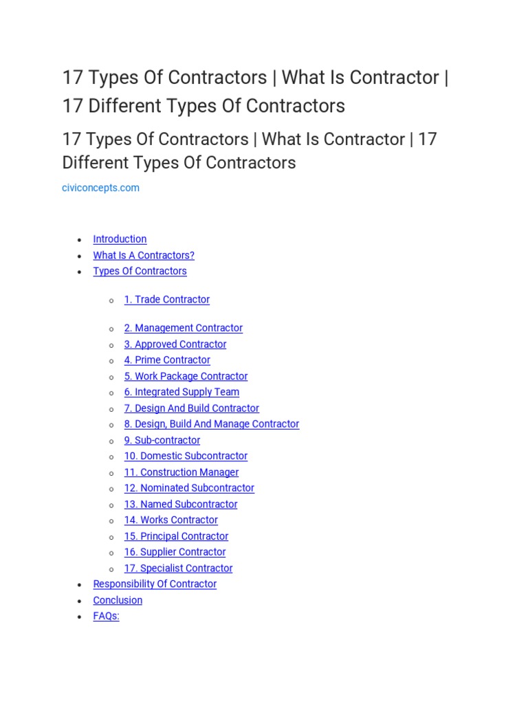 Different Types Of Contractors