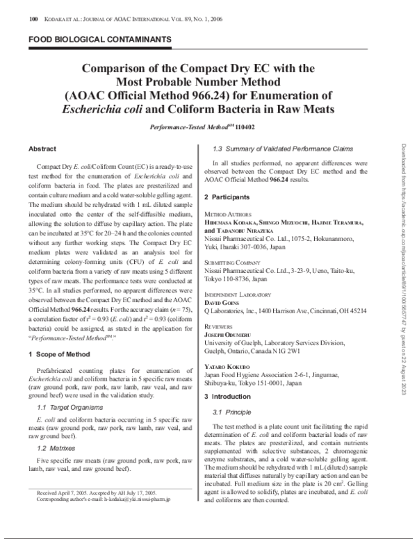 (PDF) Comparison of the Compact Dry EC with the Most Probable Number ...