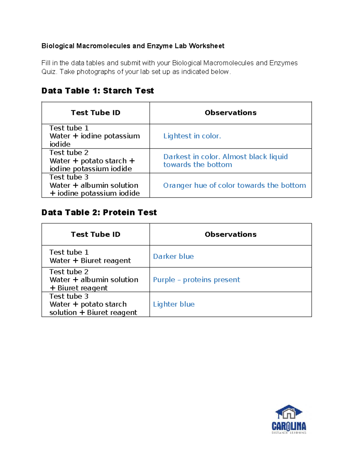 Biological Macromolecules & Enzymes Lab Worksheet (Quiz) - Studocu