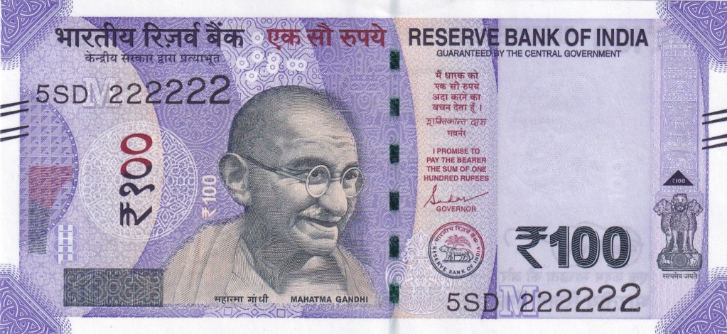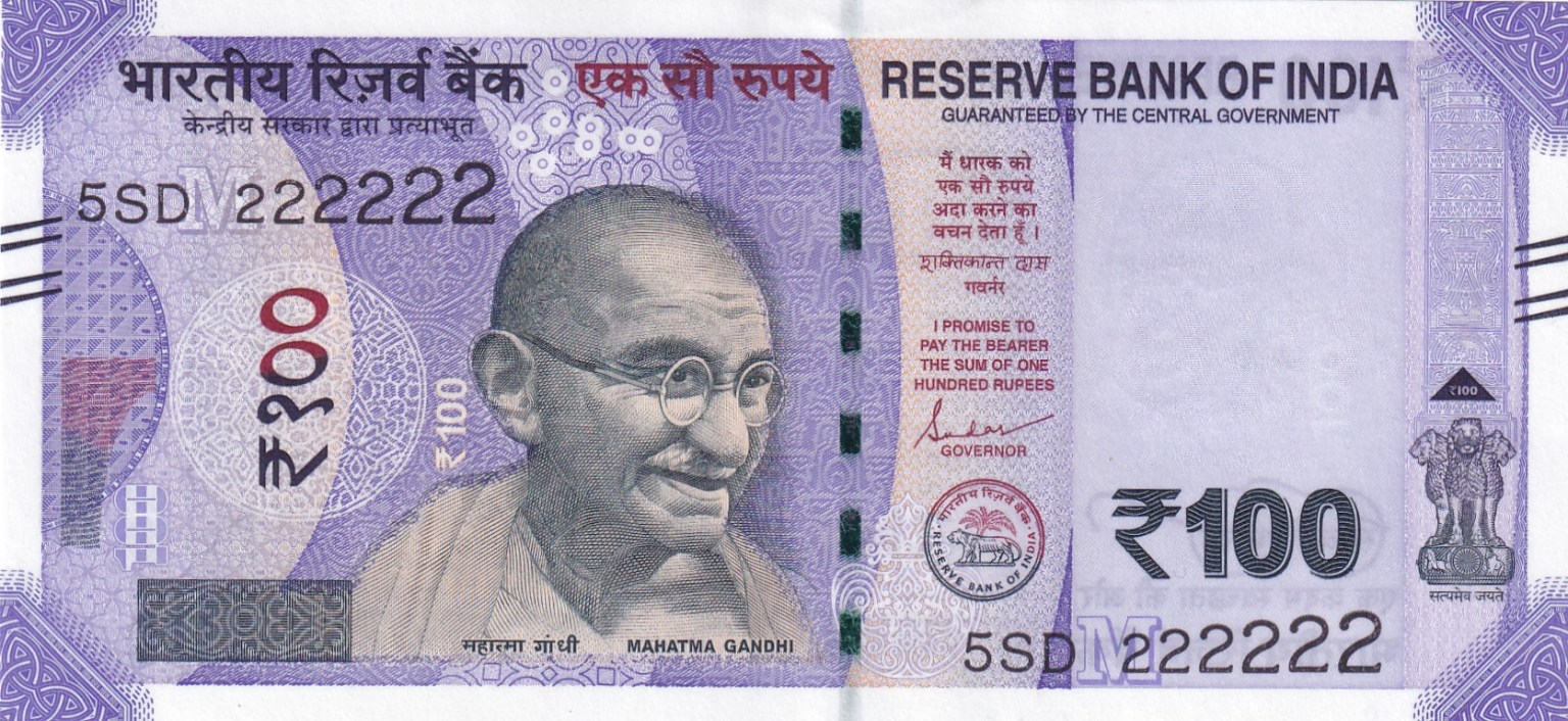 222222 FANCY NUMBER 100 Rupees GEM 💎 UNC RARE NOTE - Coinbazzar.com