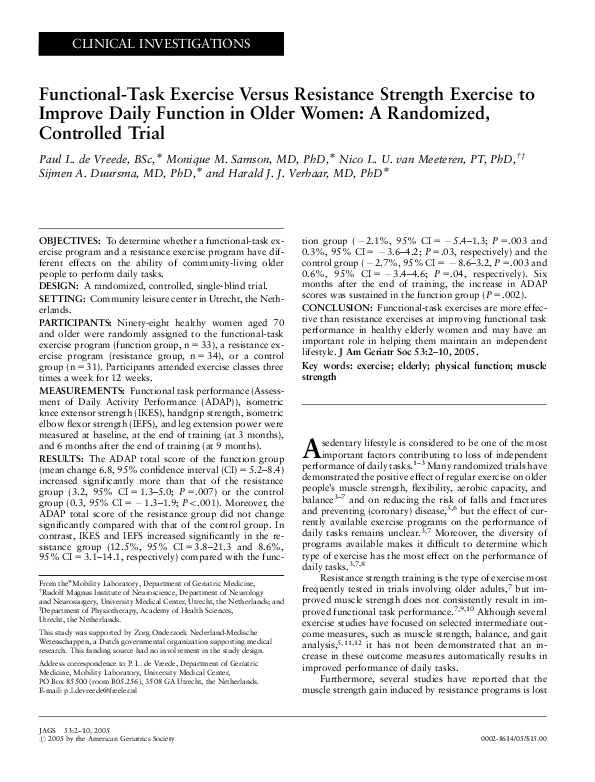 (PDF) Functional‐Task Exercise Versus Resistance Strength Exercise to ...