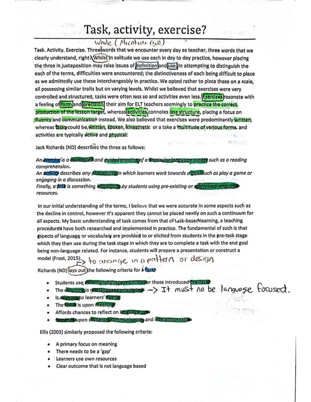 Task, Activity, and Exercise: Understanding Key Teaching Concepts - Studocu