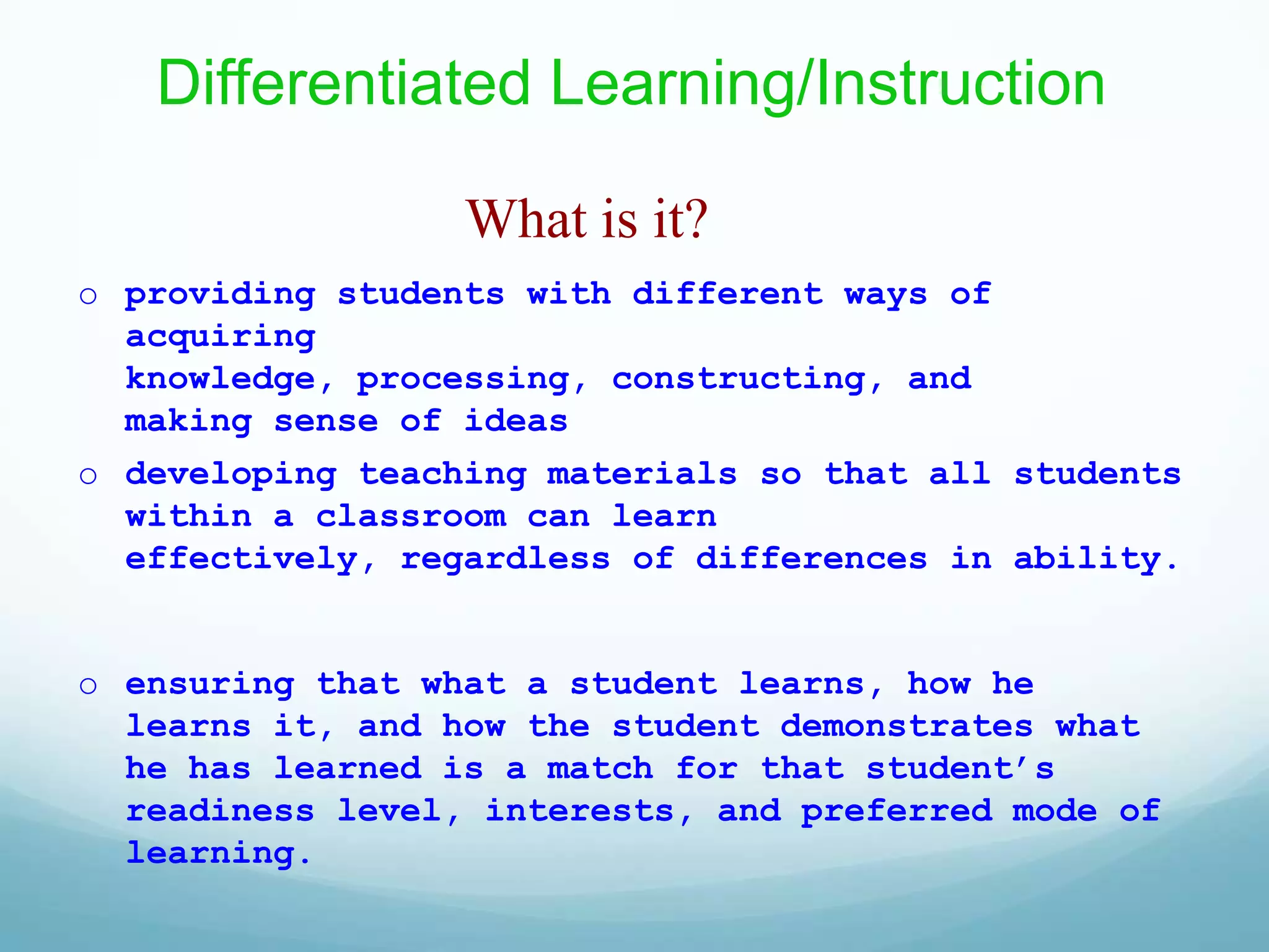 Differentiated learning | PPTX | Educational Assessment | Education