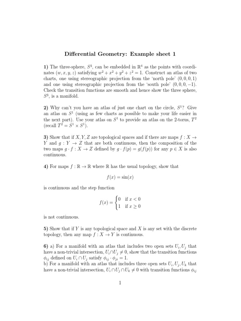 Differential Geometry Example Sheet | PDF | Manifold | Topology
