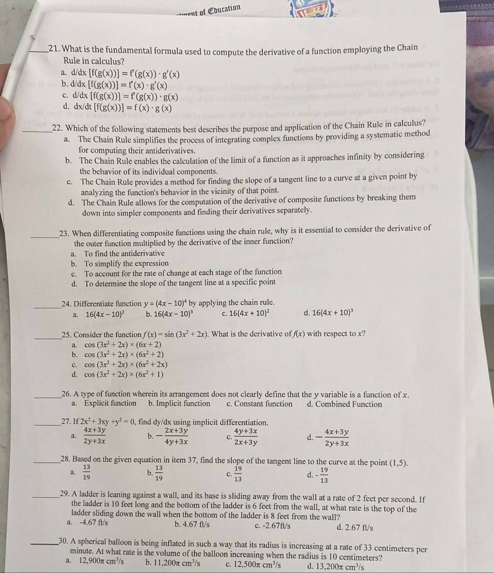 Chain Rule - Maths Formulas for Calculus (Course Code: 22) - Studocu