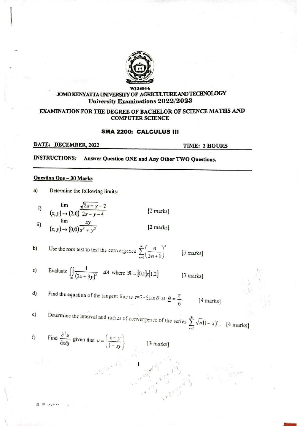 SMA 2200: Calculus 3 Exam Notes - December 2022 - Studocu
