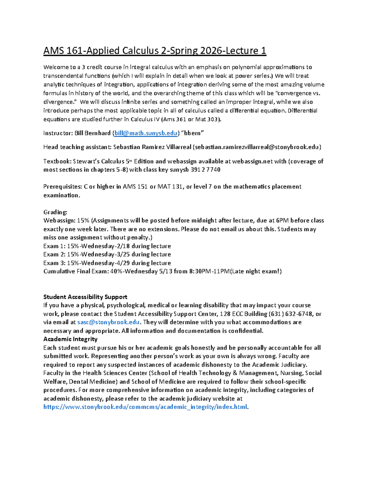 AMS 161 Spring 2026 - Syllabus for Calculus II Course - Studocu
