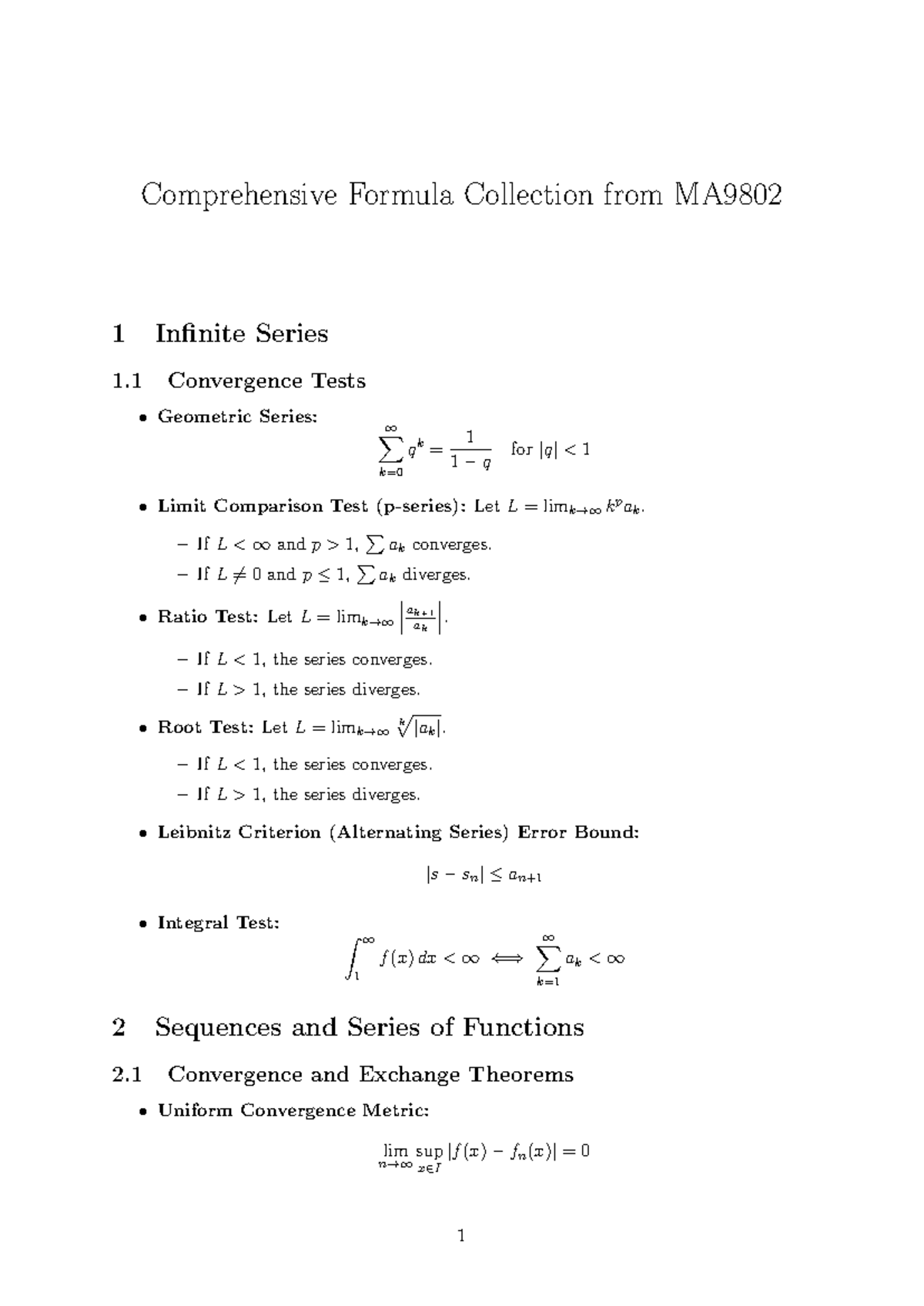 Comprehensive Formula Collection for MA9802: Infinite Series & More ...