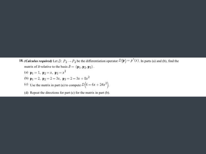 Solved 18. (Calculus required) Let D: P2 right arrow P2 be | Chegg.com