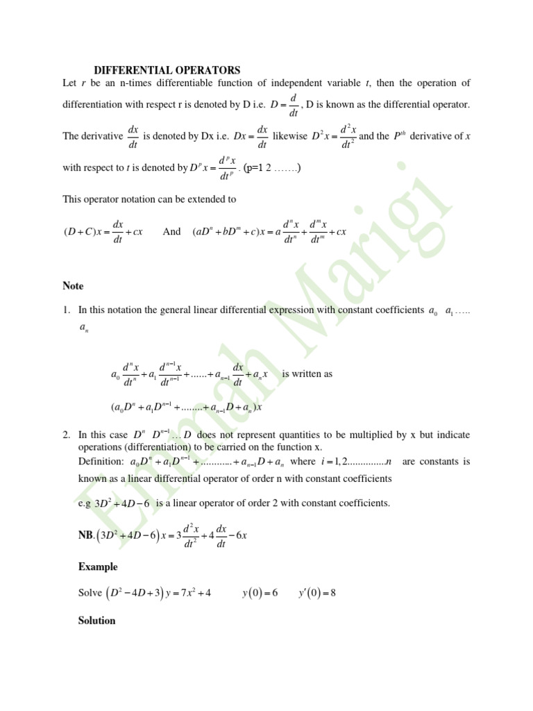 Linear Differential Operators Overview | PDF | Ordinary Differential ...