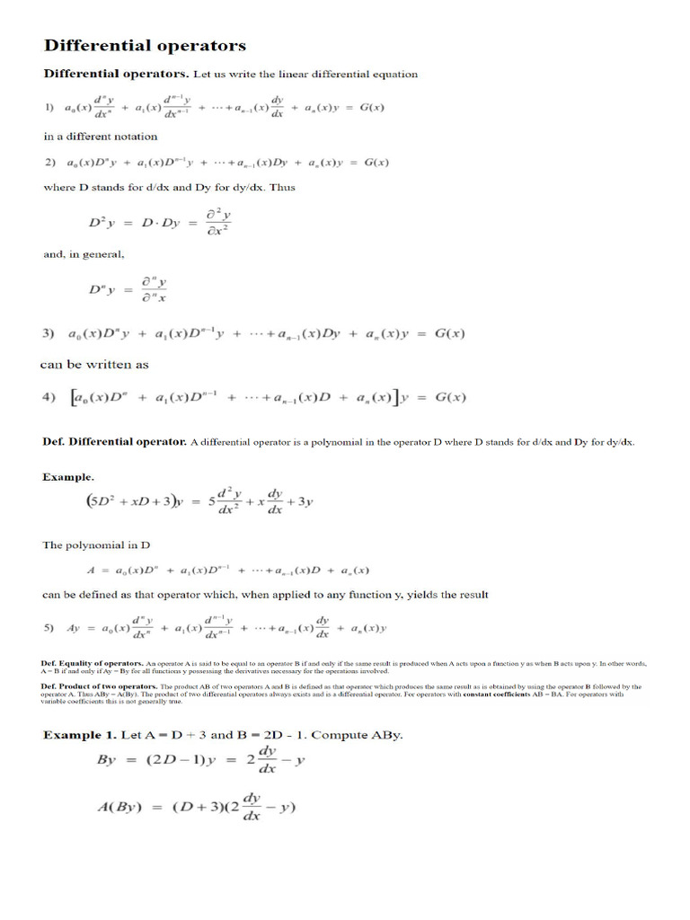 0.1 Differential Operator: D DX D DX 2 | PDF | Ordinary Differential ...