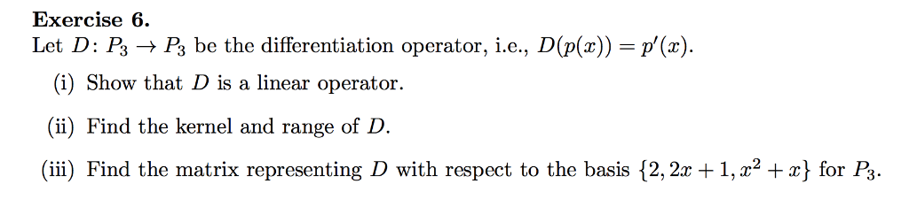 Solved Exercise 6. Let D: P3P3 be the differentiation | Chegg.com