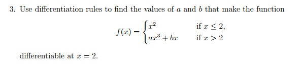 Solved 3. Use differentiation rules to find the values of a | Chegg.com