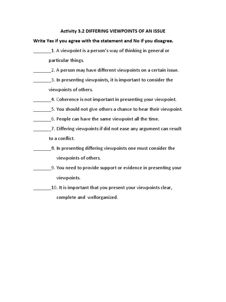 Activity 3.2 Differing Viewpoints of An Issue | PDF