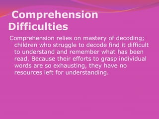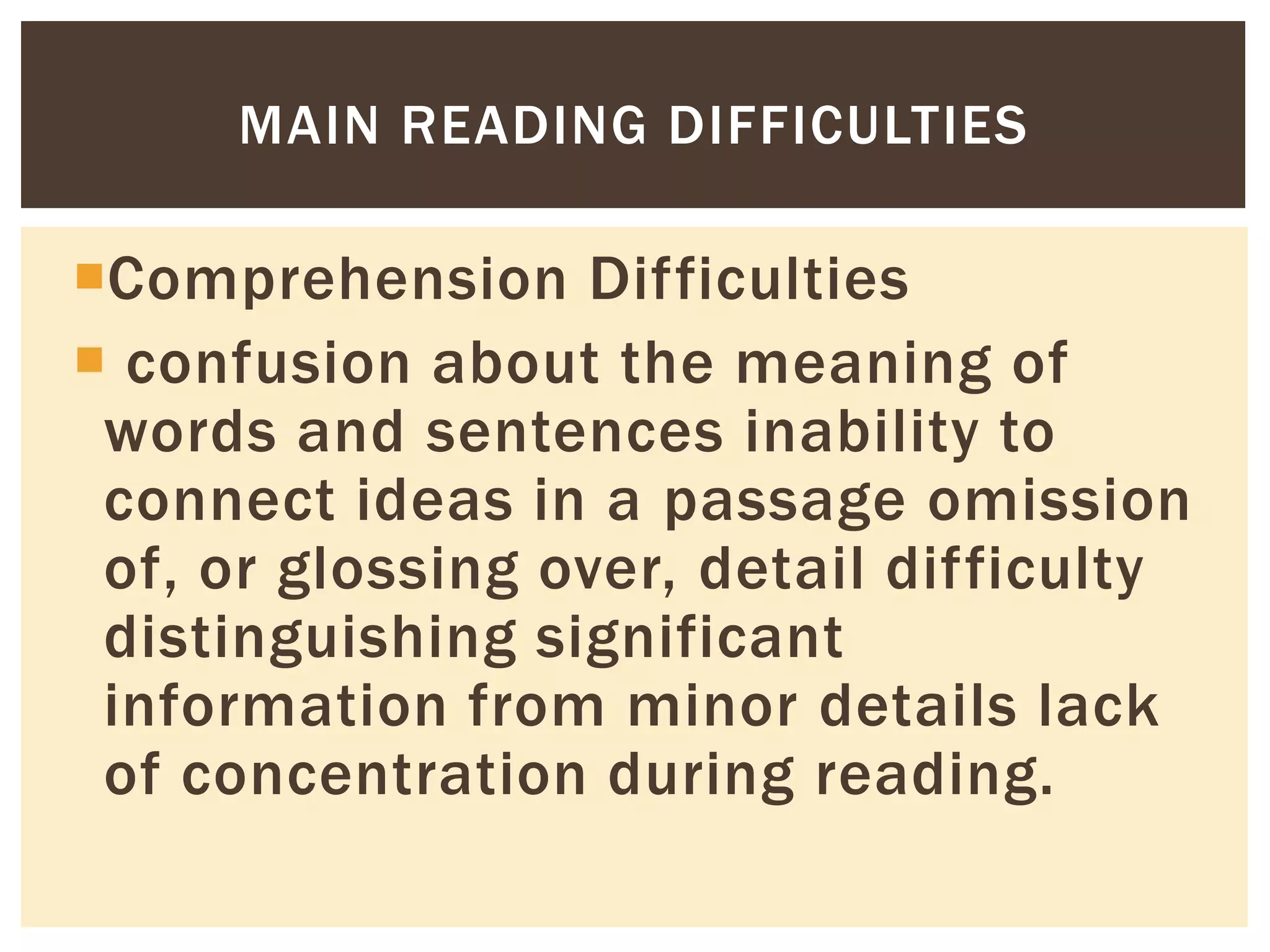 Reading Difficulties | Reading (Process) | Reading Comprehension | Free ...