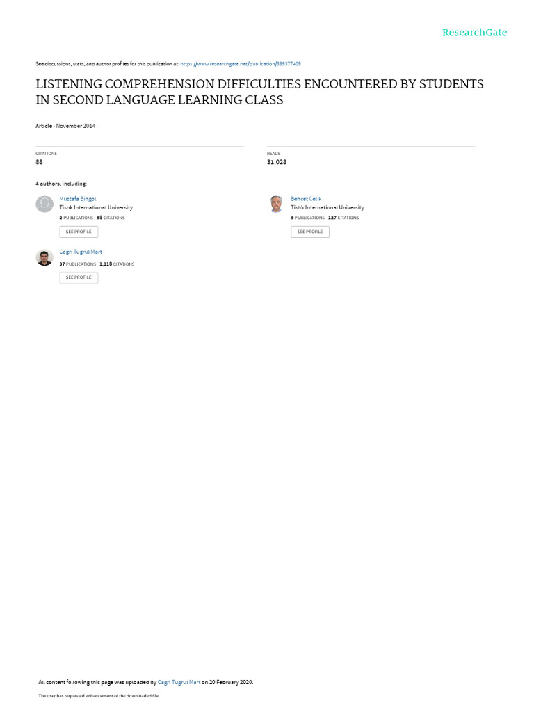 Listening Comprehension Difficulties in 798780f1 | PDF | Reading ...
