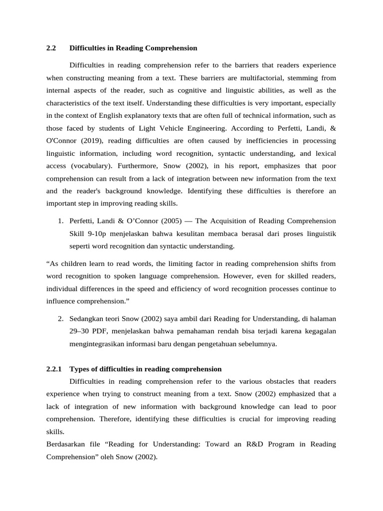 2.2 Difficulties in Reading Comprehension | PDF | Reading Comprehension ...