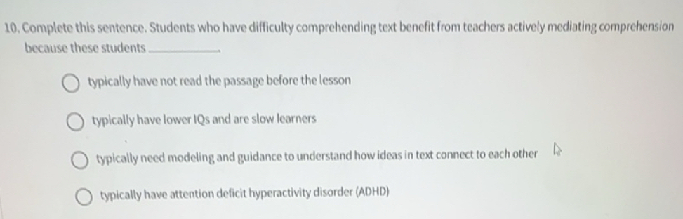 Solved: Complete this sentence. Students who have difficulty ...