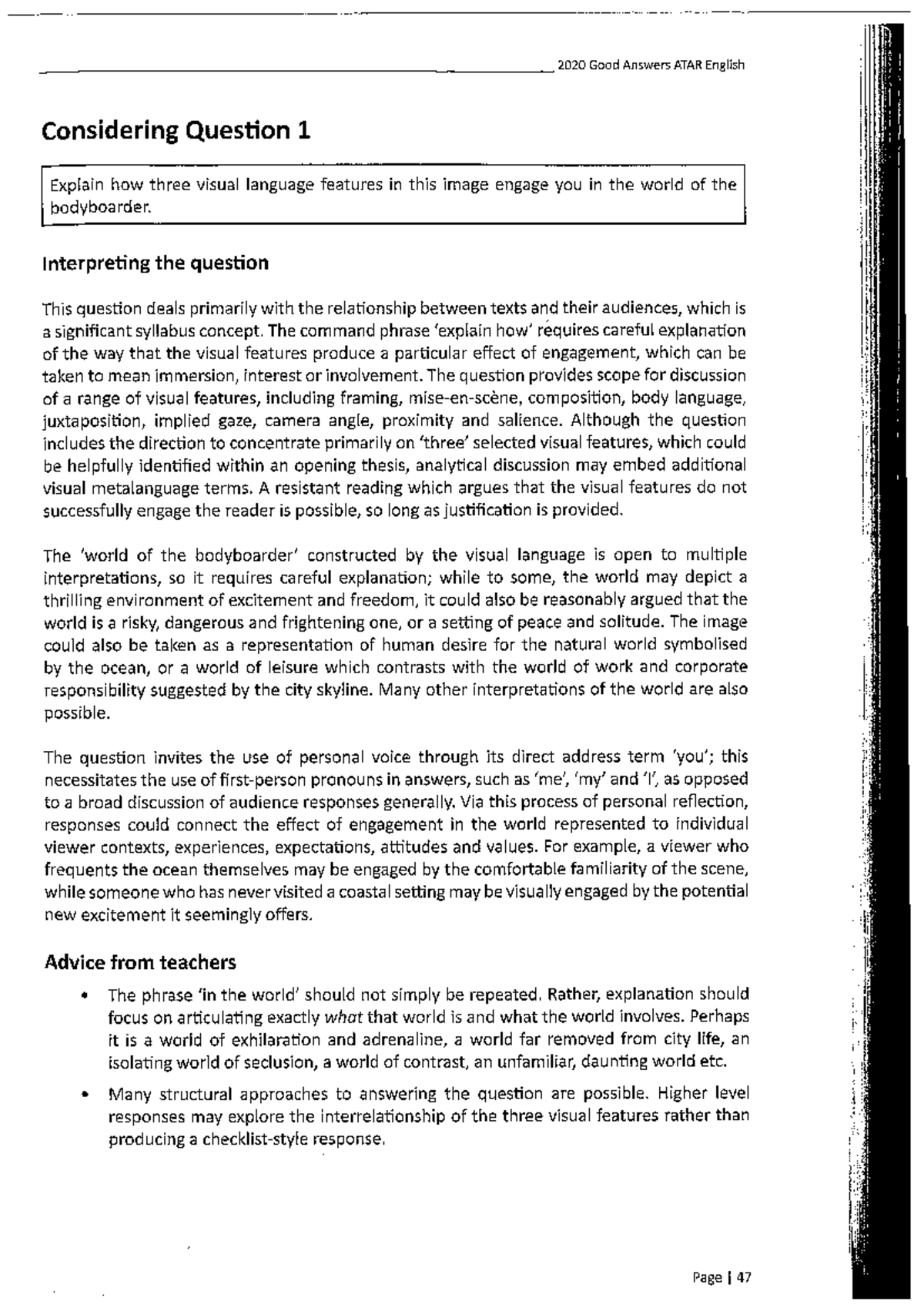 2020 Good Answers ATAR English Comprehending Sample Responses Analysis ...