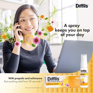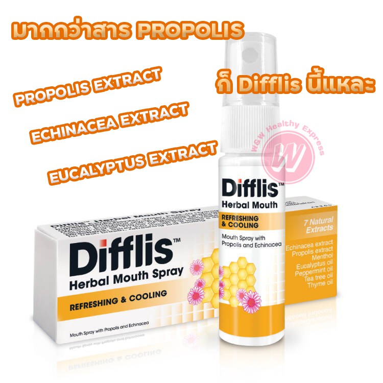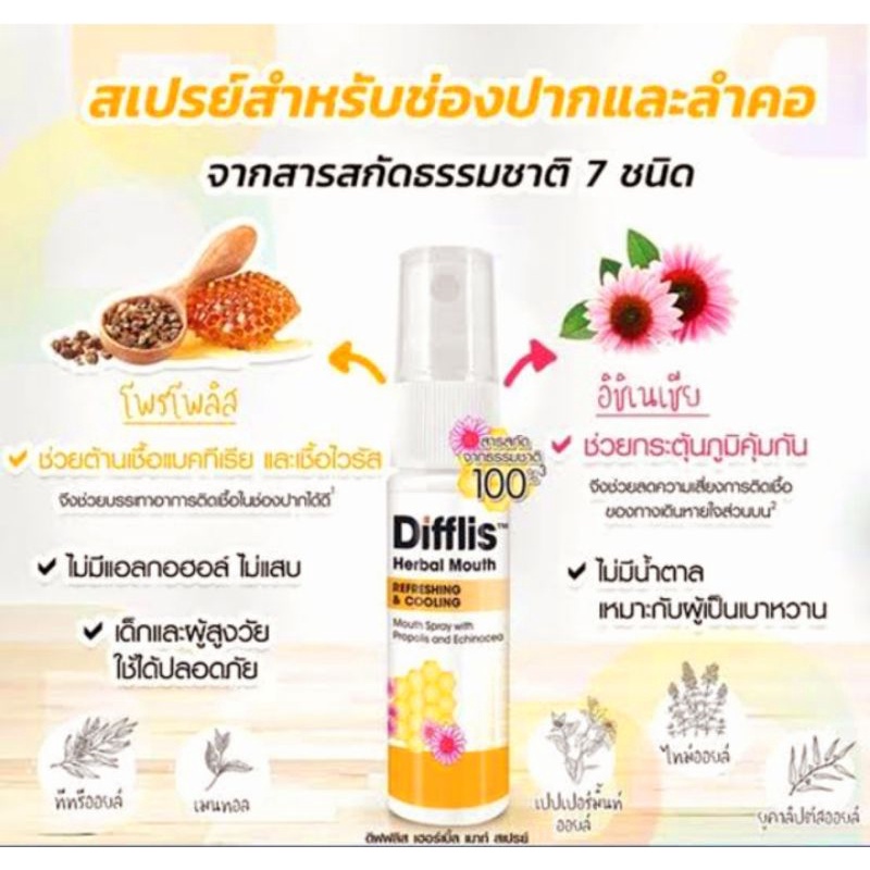 Difflis herbal mouth spray สเปรย์พ่นคอ ตัวยาพ่นคอ มีสาร Propolis ใช้แทน ...