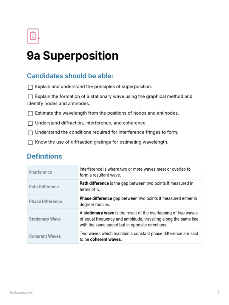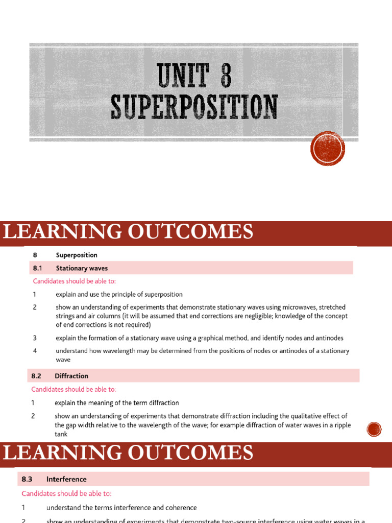 CIE AS & A Level Physics 9702: Topic 8: Superposition- Unit : 8.2 ...