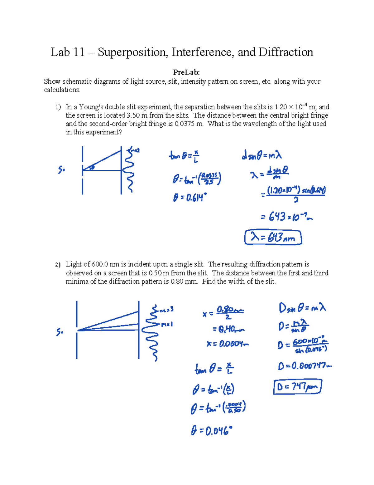 Pre Lab 11 - Pre-lab - Lab 11 – Superposition, Interference, and ...