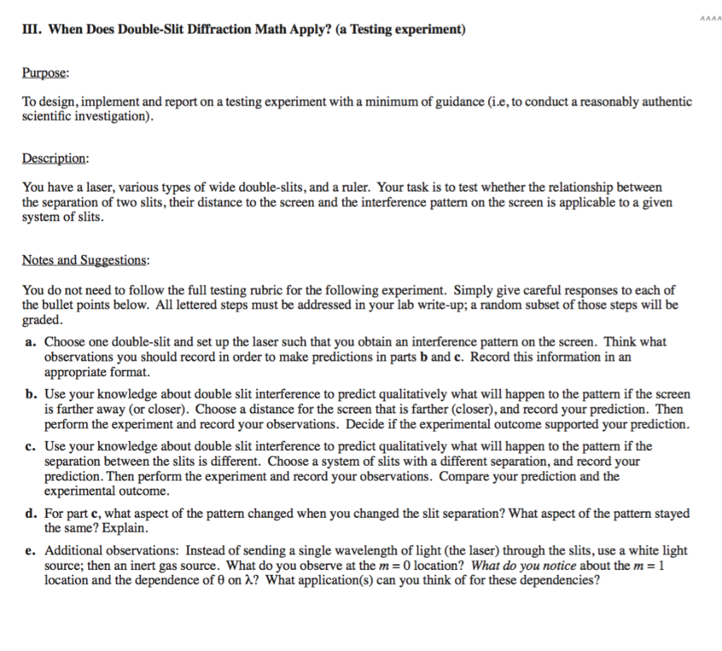 Solved AAAA III. When Does Double-Slit Diffraction Math | Chegg.com