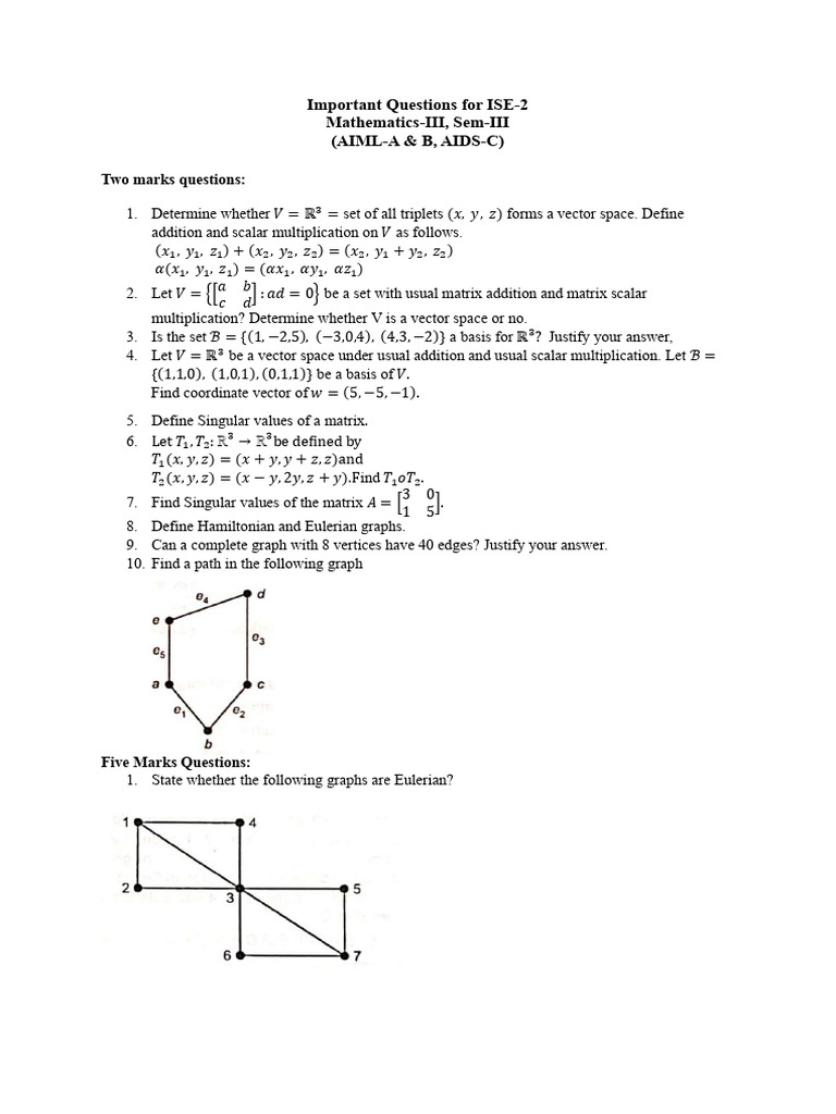 M-III, Importants For ISE-2 | PDF | Matrix (Mathematics) | Basis ...