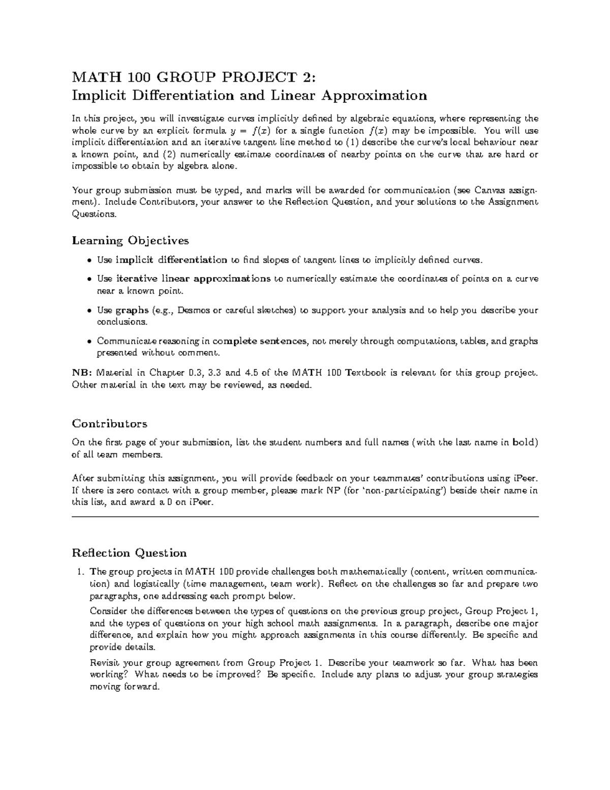 MATH 100 Group Project 2: Implicit Differentiation & Linear ...
