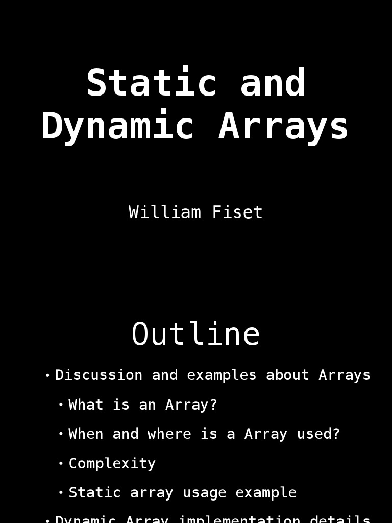 Static and Dynamic Arrays: William Fiset | PDF | Array Data Structure ...