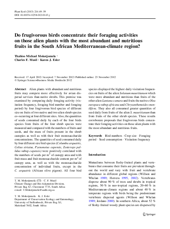 (PDF) Consumption of fruits of the Melastomataceae by birds: How ...