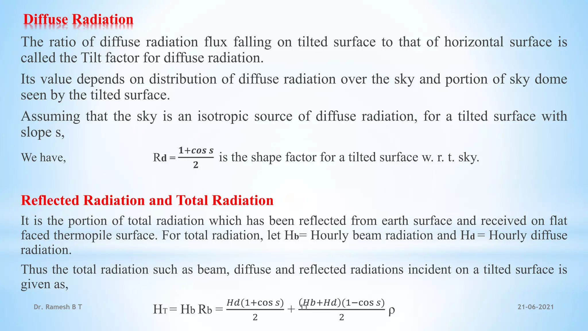 Direct, diffuse and reflected radiation of the ground on a sloped ...